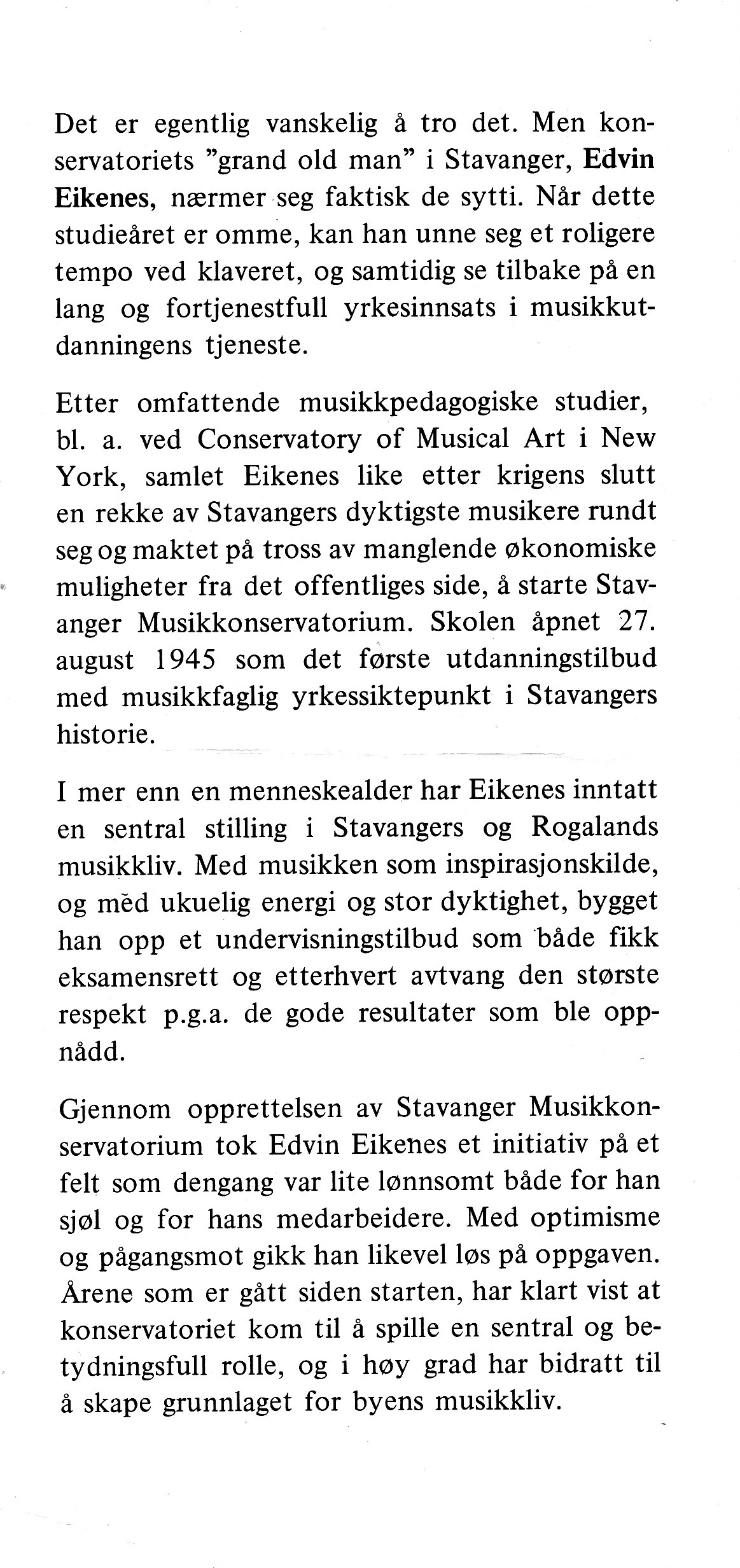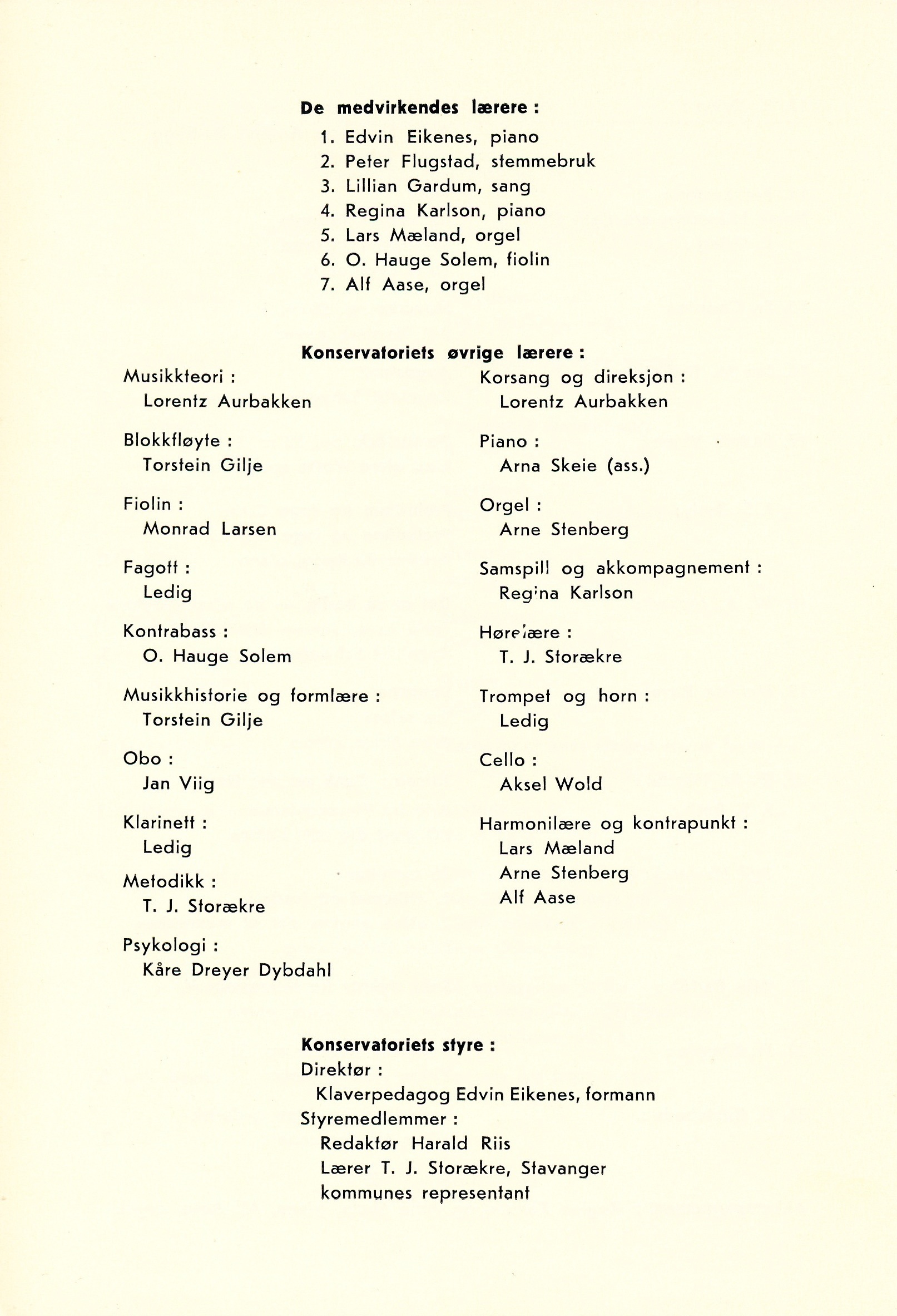 Stavanger Musikkonservatorium 1945 – 1971Copyright ©: Eivind A.C. Eikenes, 2021 |
