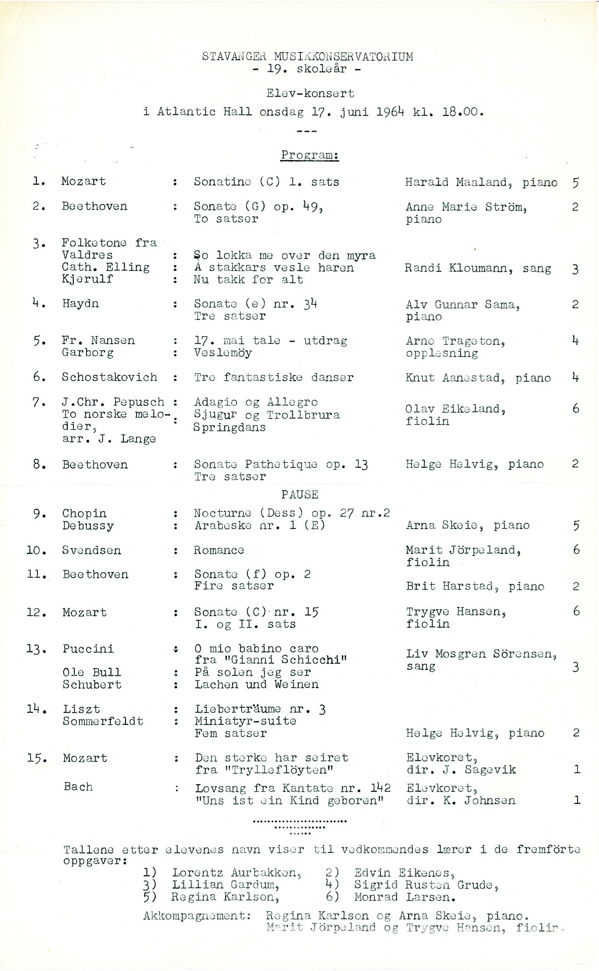 | 1964: Elevkonsert i Atlantic Hall.