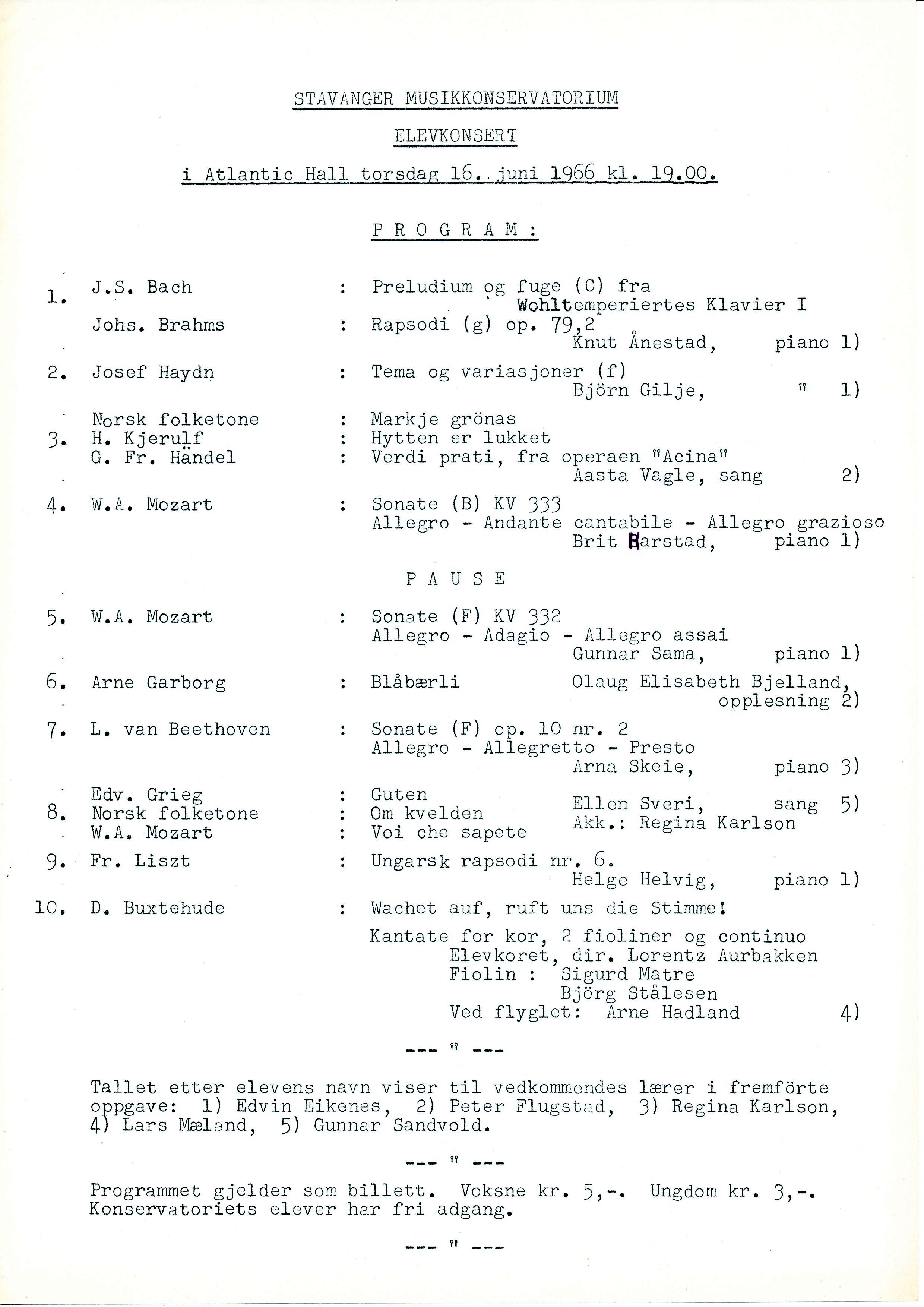 | 1966: Elevkonsert i Atlantic Hall.