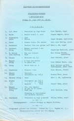 overspilt med andre opptak. Noen av opptakene har feil og mangler. Det var aldri meningen at selve opptakene skulle offentliggjøres, og det gjelder fortsatt. Denne oversikten er laget for å gi svar på spørsmål om opptakene. For konsertene 1963–1971 er også den digitaliserte spilletiden tatt med. Inntil lydbåndene er kontrollert, kan informasjonene om lydformat osv. være feil. Konsertprogrammene som publikum fikk ved inngangen, er gjengitt her som jpg-filer. Min mor, Wendla Eikenes, passet i sin tid på at det ble det lagt til side eksemplarer av konsertprogrammene. Av en eller annen grunn eksisterer det i dag bare fire, alle litt medtatte, eksemplarer av programmet fra 21. juni 1968. Undertegnede husker ellers pakkingen og frankeringen av 50 til 100 konvolutter med fribilletter før konsertene. Å se et helark med 100 frimerker var den gang ikke vanlig, men til utsendingen av fribilletter, ble det kjøpt inn. |